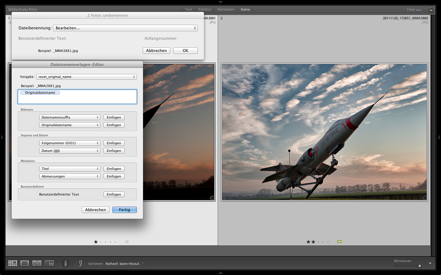 In der Vergangenheit habe ich mich mehrfach geärgert, weil ich zu unkonzentriert meine Bildnamen geändert habe (insbesondere in Zeiten, in denen ich mich noch nicht mit dem Thema Bildverwaltung und Bildarchivierung beschäftigt habe). Überlegen Sie sich daher lieber gut, ob Sie sich noch ein Hintertürchen offen lassen wollen, damit ursprüngliche Dateinamen rekonstruiert werden können.